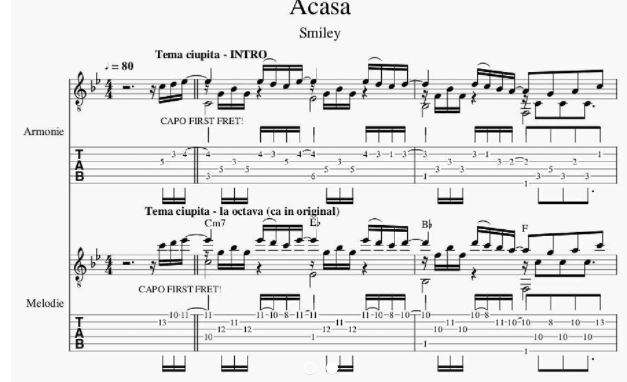 15.Smiley- Acasa - Suportul de lectie cuprinde diagramele tuturor acordurilor, partitura completa a piesei PDF cu scriitura clasica dublata de TABULATURI (chitara 1 - chitara armonie, cea care este explicata in lectie si chitara 2- linia melodica a vocii si cuvintele), negativul piesei cu click de metronom (fara chitara armonie - pentru a putea repeta cu melodia suprapusa) si "pozitivul" - adica piesa completa (pentru a avea un model)